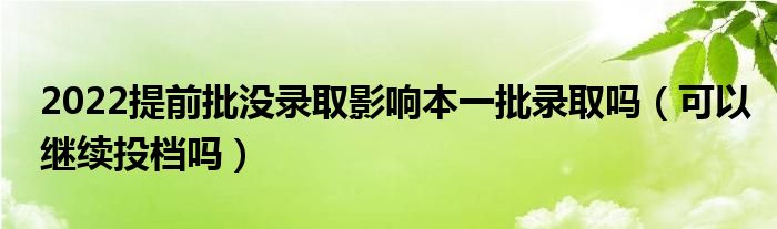 大家好,小高來為大家解答以上問題。2022提前批沒錄取影響本一批錄取嗎,可以繼續(xù)投檔嗎很多人還不知道,現(xiàn)在讓我們一起來看看吧!