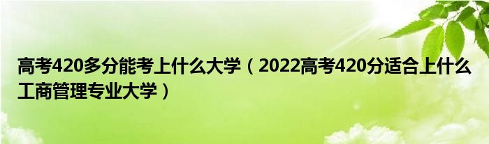 大家好,小高來(lái)為大家解答以上問(wèn)題。高考420多分能考上什么大學(xué),2022高考420分適合上什么工商管理專業(yè)大學(xué)很多人還不知道,現(xiàn)在讓我們一起來(lái)看看吧!