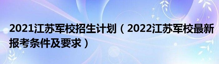 大家好,小高來(lái)為大家解答以上問(wèn)題。2021江蘇軍校招生計(jì)劃,2022江蘇軍校最新報(bào)考條件及要求很多人還不知道,現(xiàn)在讓我們一起來(lái)看看吧!