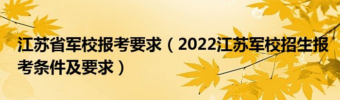 大家好,小高來為大家解答以上問題。江蘇省軍校報(bào)考要求,2022江蘇軍校招生報(bào)考條件及要求很多人還不知道,現(xiàn)在讓我們一起來看看吧!