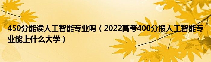 大家好,小高來為大家解答以上問題。450分能讀人工智能專業(yè)嗎,2022高考400分報人工智能專業(yè)能上什么大學(xué)很多人還不知道,現(xiàn)在讓我們一起來看看吧!