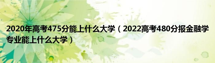 大家好,小高來為大家解答以上問題。2020年高考475分能上什么大學(xué),2022高考480分報金融學(xué)專業(yè)能上什么大學(xué)很多人還不知道,現(xiàn)在讓我們一起來看看吧!
