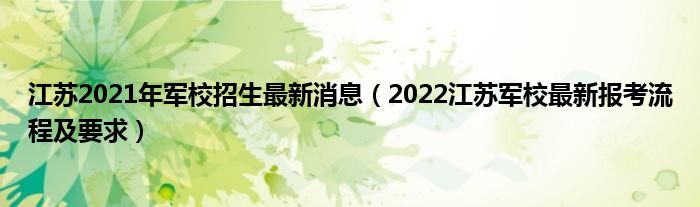 大家好,小高來為大家解答以上問題。江蘇2021年軍校招生最新消息,2022江蘇軍校最新報(bào)考流程及要求很多人還不知道,現(xiàn)在讓我們一起來看看吧!