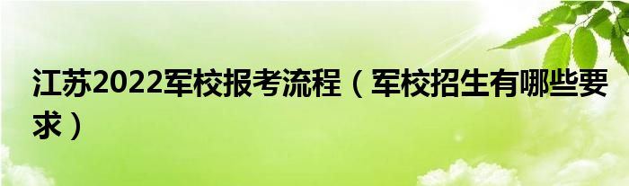 大家好,小高來(lái)為大家解答以上問(wèn)題。江蘇2022軍校報(bào)考流程,軍校招生有哪些要求很多人還不知道,現(xiàn)在讓我們一起來(lái)看看吧!