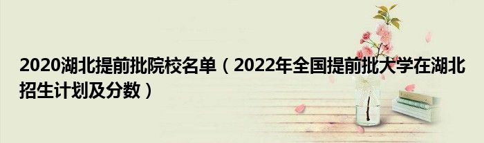 大家好,小高來為大家解答以上問題。2020湖北提前批院校名單,2022年全國提前批大學(xué)在湖北招生計劃及分?jǐn)?shù)很多人還不知道,現(xiàn)在讓我們一起來看看吧!