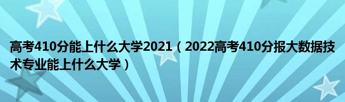 大家好,小高來為大家解答以上問題。高考410分能上什么大學(xué)2021,2022高考410分報(bào)大數(shù)據(jù)技術(shù)專業(yè)能上什么大學(xué)很多人還不知道,現(xiàn)在讓我們一起來看看吧!