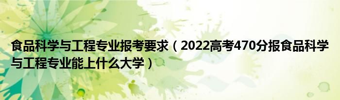 大家好,小高來為大家解答以上問題。食品科學(xué)與工程專業(yè)報考要求,2022高考470分報食品科學(xué)與工程專業(yè)能上什么大學(xué)很多人還不知道,現(xiàn)在讓我們一起來看看吧!