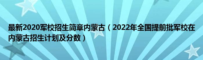 大家好,小高來為大家解答以上問題。最新2020軍校招生簡章內(nèi)蒙古,2022年全國提前批軍校在內(nèi)蒙古招生計劃及分?jǐn)?shù)很多人還不知道,現(xiàn)在讓我們一起來看看吧!