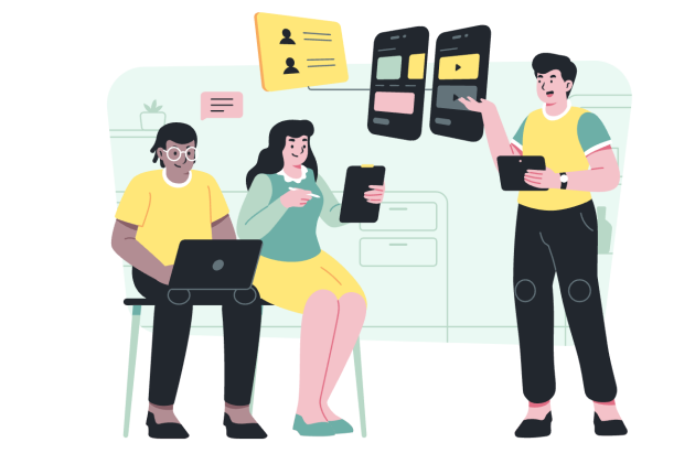 在下圖項(xiàng)目示例中,UI設(shè)計(jì)師負(fù)責(zé)選擇顏色、字體、圖像、設(shè)計(jì)布局,并創(chuàng)建用戶點(diǎn)擊按鈕或滾動(dòng)時(shí)的動(dòng)畫。