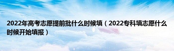 大家好,小高來為大家解答以上問題。2022年高考志愿提前批什么時(shí)候填,2022??铺钪驹甘裁磿r(shí)候開始填報(bào)很多人還不知道,現(xiàn)在讓我們一起來看看吧!