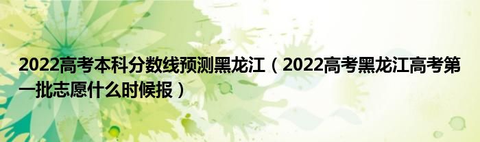 大家好,小高來為大家解答以上問題。2022高考本科分?jǐn)?shù)線預(yù)測黑龍江,2022高考黑龍江高考第一批志愿什么時候報(bào)很多人還不知道,現(xiàn)在讓我們一起來看看吧!