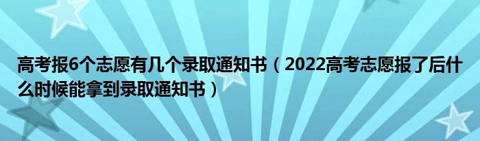 大家好,小高來(lái)為大家解答以上問(wèn)題。高考報(bào)6個(gè)志愿有幾個(gè)錄取通知書(shū),2022高考志愿報(bào)了后什么時(shí)候能拿到錄取通知書(shū)很多人還不知道,現(xiàn)在讓我們一起來(lái)看看吧!