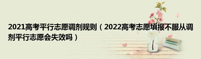 大家好,小高來為大家解答以上問題。2021高考平行志愿調(diào)劑規(guī)則,2022高考志愿填報不服從調(diào)劑平行志愿會失效嗎很多人還不知道,現(xiàn)在讓我們一起來看看吧!
