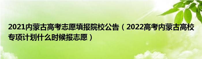 大家好,小高來為大家解答以上問題。2021內(nèi)蒙古高考志愿填報院校公告,2022高考內(nèi)蒙古高校專項計劃什么時候報志愿很多人還不知道,現(xiàn)在讓我們一起來看看吧!