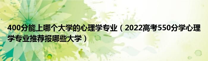 大家好,小高來為大家解答以上問題。400分能上哪個大學的心理學專業(yè),2022高考550分學心理學專業(yè)推薦報哪些大學很多人還不知道,現(xiàn)在讓我們一起來看看吧!