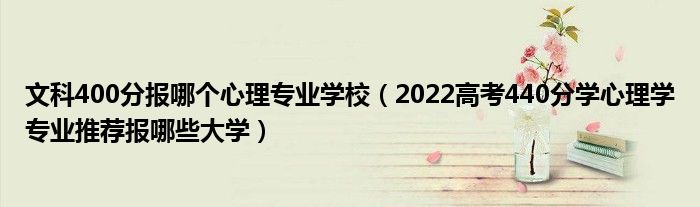 大家好,小高來為大家解答以上問題。文科400分報(bào)哪個(gè)心理專業(yè)學(xué)校,2022高考440分學(xué)心理學(xué)專業(yè)推薦報(bào)哪些大學(xué)很多人還不知道,現(xiàn)在讓我們一起來看看吧!