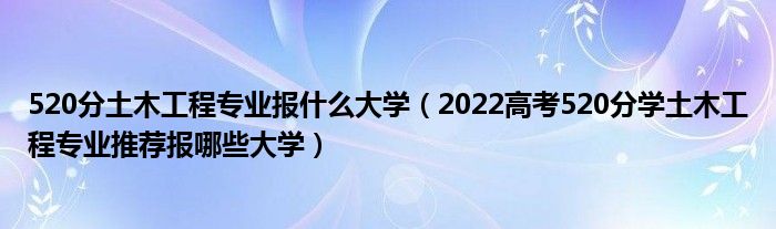大家好,小高來為大家解答以上問題。520分土木工程專業(yè)報什么大學(xué),2022高考520分學(xué)土木工程專業(yè)推薦報哪些大學(xué)很多人還不知道,現(xiàn)在讓我們一起來看看吧!