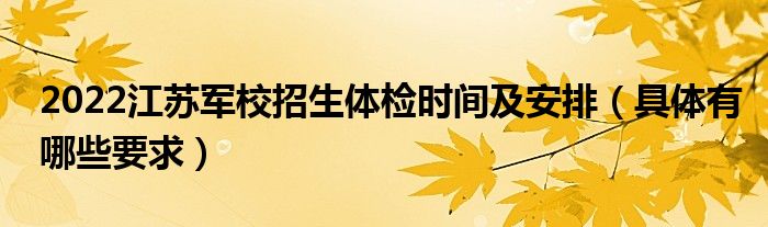 大家好,小高來(lái)為大家解答以上問(wèn)題。2022江蘇軍校招生體檢時(shí)間及安排,具體有哪些要求很多人還不知道,現(xiàn)在讓我們一起來(lái)看看吧!