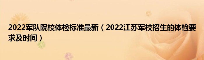 大家好,小高來為大家解答以上問題。2022軍隊(duì)院校體檢標(biāo)準(zhǔn)最新,2022江蘇軍校招生的體檢要求及時(shí)間很多人還不知道,現(xiàn)在讓我們一起來看看吧!