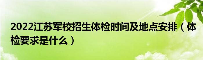 大家好,小高來為大家解答以上問題。2022江蘇軍校招生體檢時間及地點安排,體檢要求是什么很多人還不知道,現在讓我們一起來看看吧!