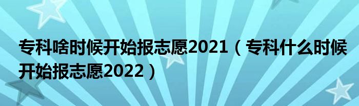 大家好,小高來為大家解答以上問題。專科啥時候開始報志愿2021,??剖裁磿r候開始報志愿2022很多人還不知道,現(xiàn)在讓我們一起來看看吧!
