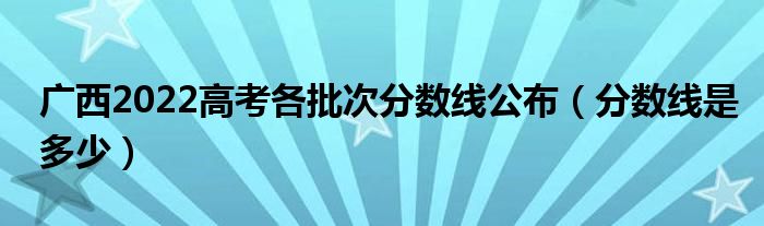 大家好,小高來(lái)為大家解答以上問(wèn)題。廣西2022高考各批次分?jǐn)?shù)線公布,分?jǐn)?shù)線是多少很多人還不知道,現(xiàn)在讓我們一起來(lái)看看吧!