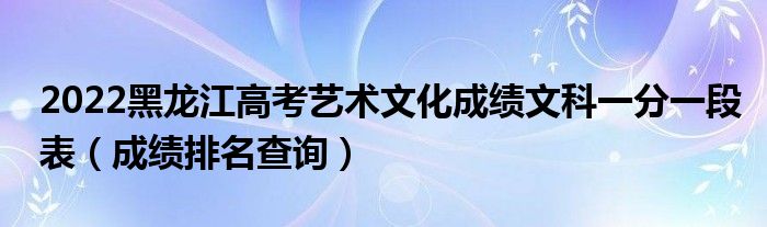 大家好,小高來(lái)為大家解答以上問(wèn)題。2022黑龍江高考藝術(shù)文化成績(jī)文科一分一段表,成績(jī)排名查詢很多人還不知道,現(xiàn)在讓我們一起來(lái)看看吧!