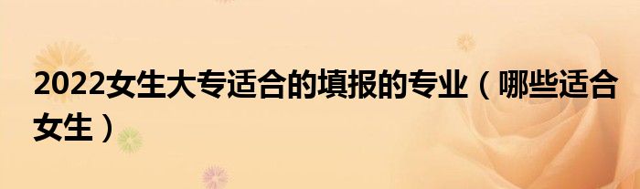 大家好,小高來(lái)為大家解答以上問(wèn)題。2022女生大專適合的填報(bào)的專業(yè),哪些適合女生很多人還不知道,現(xiàn)在讓我們一起來(lái)看看吧!
