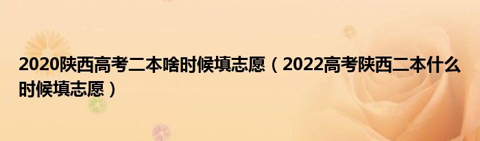 大家好,小高來為大家解答以上問題。2020陜西高考二本啥時(shí)候填志愿,2022高考陜西二本什么時(shí)候填志愿很多人還不知道,現(xiàn)在讓我們一起來看看吧!