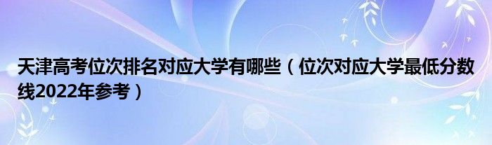 大家好,小高來為大家解答以上問題。天津高考位次排名對(duì)應(yīng)大學(xué)有哪些,位次對(duì)應(yīng)大學(xué)最低分?jǐn)?shù)線2022年參考很多人還不知道,現(xiàn)在讓我們一起來看看吧!