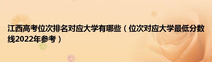 大家好,小高來(lái)為大家解答以上問(wèn)題。江西高考位次排名對(duì)應(yīng)大學(xué)有哪些,位次對(duì)應(yīng)大學(xué)最低分?jǐn)?shù)線(xiàn)2022年參考很多人還不知道,現(xiàn)在讓我們一起來(lái)看看吧!