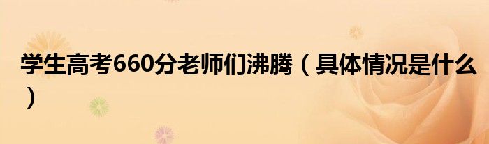 大家好,小高來為大家解答以上問題。學(xué)生高考660分老師們沸騰,具體情況是什么很多人還不知道,現(xiàn)在讓我們一起來看看吧!