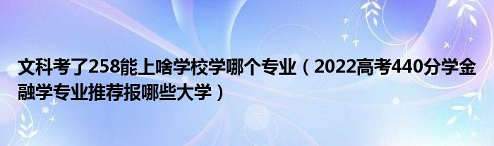大家好,小高來為大家解答以上問題。文科考了258能上啥學校學哪個專業(yè),2022高考440分學金融學專業(yè)推薦報哪些大學很多人還不知道,現(xiàn)在讓我們一起來看看吧!