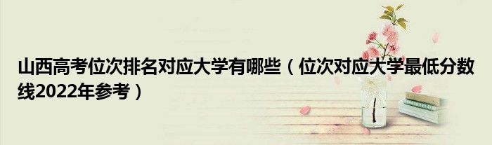 大家好,小高來為大家解答以上問題。山西高考位次排名對(duì)應(yīng)大學(xué)有哪些,位次對(duì)應(yīng)大學(xué)最低分?jǐn)?shù)線2022年參考很多人還不知道,現(xiàn)在讓我們一起來看看吧!