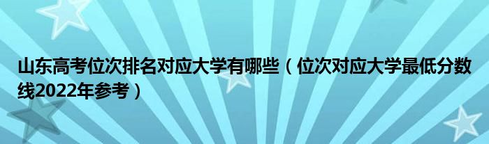 大家好,小高來(lái)為大家解答以上問(wèn)題。山東高考位次排名對(duì)應(yīng)大學(xué)有哪些,位次對(duì)應(yīng)大學(xué)最低分?jǐn)?shù)線2022年參考很多人還不知道,現(xiàn)在讓我們一起來(lái)看看吧!