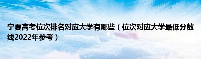 大家好,小高來為大家解答以上問題。寧夏高考位次排名對應(yīng)大學(xué)有哪些,位次對應(yīng)大學(xué)最低分?jǐn)?shù)線2022年參考很多人還不知道,現(xiàn)在讓我們一起來看看吧!