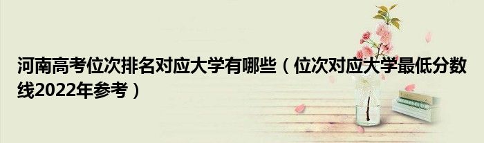 大家好,小高來為大家解答以上問題。河南高考位次排名對應(yīng)大學(xué)有哪些,位次對應(yīng)大學(xué)最低分數(shù)線2022年參考很多人還不知道,現(xiàn)在讓我們一起來看看吧!