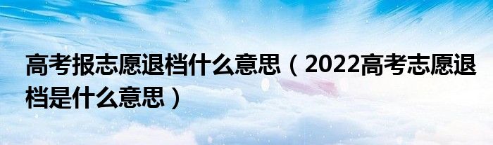 大家好,小高來為大家解答以上問題。高考報志愿退檔什么意思,2022高考志愿退檔是什么意思很多人還不知道,現(xiàn)在讓我們一起來看看吧!