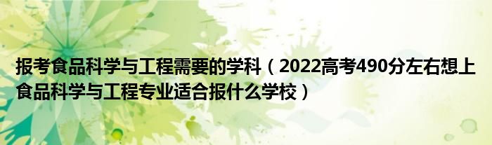 大家好,小高來(lái)為大家解答以上問(wèn)題。報(bào)考食品科學(xué)與工程需要的學(xué)科,2022高考490分左右想上食品科學(xué)與工程專業(yè)適合報(bào)什么學(xué)校很多人還不知道,現(xiàn)在讓我們一起來(lái)看看吧!