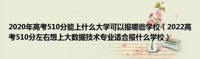 大家好,小高來(lái)為大家解答以上問(wèn)題。2020年高考510分能上什么大學(xué)可以報(bào)哪些學(xué)校,2022高考510分左右想上大數(shù)據(jù)技術(shù)專(zhuān)業(yè)適合報(bào)什么學(xué)校很多人還不知道,現(xiàn)在讓我們一起來(lái)看看吧!