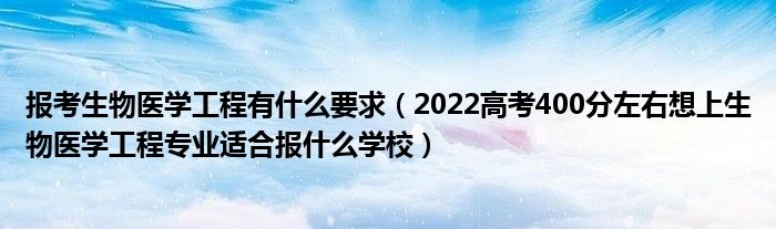 大家好,小高來為大家解答以上問題。報考生物醫(yī)學工程有什么要求,2022高考400分左右想上生物醫(yī)學工程專業(yè)適合報什么學校很多人還不知道,現(xiàn)在讓我們一起來看看吧!