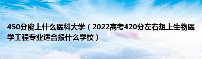 大家好,小高來為大家解答以上問題。450分能上什么醫(yī)科大學(xué),2022高考420分左右想上生物醫(yī)學(xué)工程專業(yè)適合報(bào)什么學(xué)校很多人還不知道,現(xiàn)在讓我們一起來看看吧!