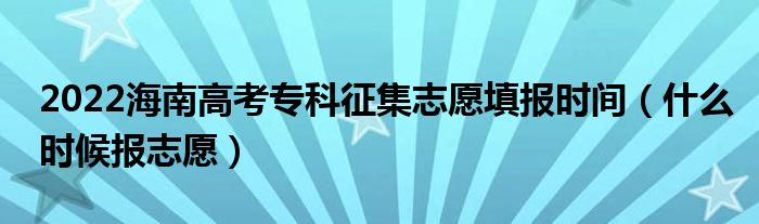 大家好,小高來為大家解答以上問題。2022海南高考??普骷驹柑顖?bào)時間,什么時候報(bào)志愿很多人還不知道,現(xiàn)在讓我們一起來看看吧!