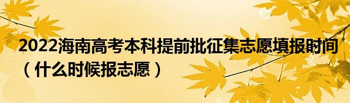 大家好,小高來為大家解答以上問題。2022海南高考本科提前批征集志愿填報時間,什么時候報志愿很多人還不知道,現(xiàn)在讓我們一起來看看吧!