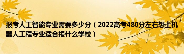 大家好,小高來為大家解答以上問題。報考人工智能專業(yè)需要多少分,2022高考480分左右想上機器人工程專業(yè)適合報什么學(xué)校很多人還不知道,現(xiàn)在讓我們一起來看看吧!