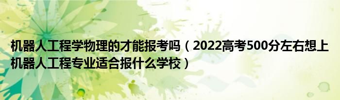 大家好,小高來(lái)為大家解答以上問(wèn)題。機(jī)器人工程學(xué)物理的才能報(bào)考嗎,2022高考500分左右想上機(jī)器人工程專業(yè)適合報(bào)什么學(xué)校很多人還不知道,現(xiàn)在讓我們一起來(lái)看看吧!