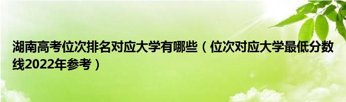 大家好,小高來為大家解答以上問題。湖南高考位次排名對應(yīng)大學(xué)有哪些,位次對應(yīng)大學(xué)最低分?jǐn)?shù)線2022年參考很多人還不知道,現(xiàn)在讓我們一起來看看吧!