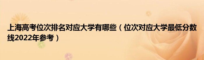 大家好,小高來為大家解答以上問題。上海高考位次排名對應(yīng)大學(xué)有哪些,位次對應(yīng)大學(xué)最低分?jǐn)?shù)線2022年參考很多人還不知道,現(xiàn)在讓我們一起來看看吧!