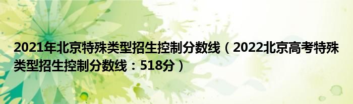 大家好,小高來為大家解答以上問題。2021年北京特殊類型招生控制分數線,2022北京高考特殊類型招生控制分數線:518分很多人還不知道,現在讓我們一起來看看吧!