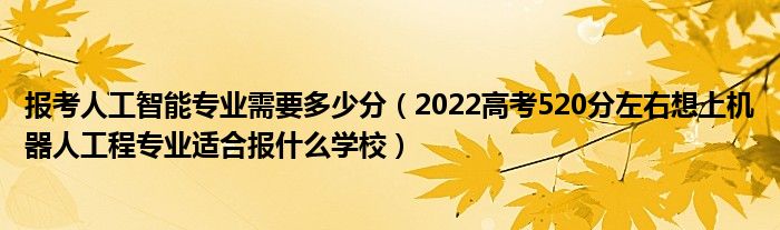 大家好,小高來為大家解答以上問題。報(bào)考人工智能專業(yè)需要多少分,2022高考520分左右想上機(jī)器人工程專業(yè)適合報(bào)什么學(xué)校很多人還不知道,現(xiàn)在讓我們一起來看看吧!